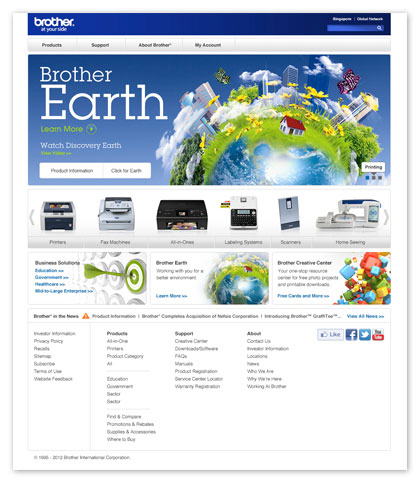 Brother International's global website committee sought to develop a unified digital brand experience across each of its international websites, while still catering to the habits and preferences of a diverse international consumer base. In addition, Brother™ wanted to improve the user experience, improve upon the brand image, and have the capability to deliver global news to consumers quickly and easily.