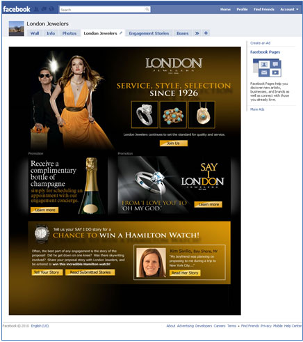 EGC developed the concept, "Say I London," to connect to prospective brides and grooms. Along with developing a Facebook page to promote London Jeweler’s engagement rings, EGC created a contest that encouraged Facebook fans to vote for their favorite engagement story.